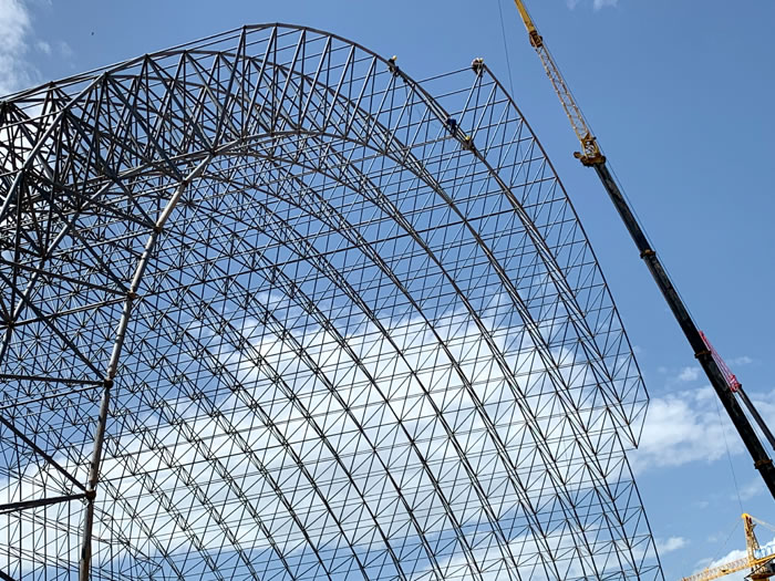 (2)网架加工前应对现场尺寸进行复测,确认无误后方可进行加工、安装;网架制作、运输、安装应遵守《空间网格结构技术规程》JGJ7-2010、《钢网架桂林螺栓球节点》JG/T 10-2009、《钢网架桂林螺栓球节点用高强度螺栓》 GB/T 16939-2016、《桂林钢结构桂林工程桂林施工规范》 GB50755-2012、《桂林钢结构桂林工程桂林施工质量验收标准》 GB50205-2020。